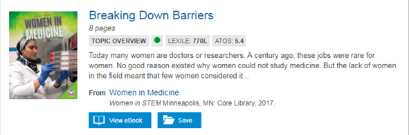 GVRL Search Results Page, Reading Levels