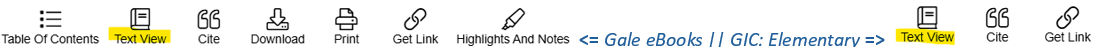 Shows a screenshot of the Text View option in the Gale eBooks and Gale In Context: Elementary databases